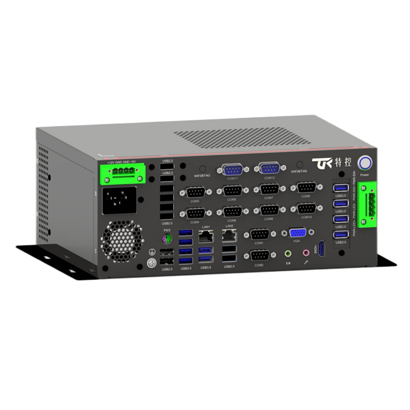 接口豐富 : 2*LAN, 10*COM, 20*USB, 1*PS/2, 1*遠 程 開 關 , 1*4PIN鳳 凰 端 子 供 電 , 1*VGA, 1*HDMI, 1*4PIN 遠程開關1*SIM槽 , 1*LINE OUT, 1*MIC, 2*2.5寸 硬 盤 位 , 1*M.2( 2230, PCIE+USB2信 號 , 支 持 1*4PIN 鳳凰端子供電(+12V/+5V)WiFi/BT/4G),1*PCIE X16